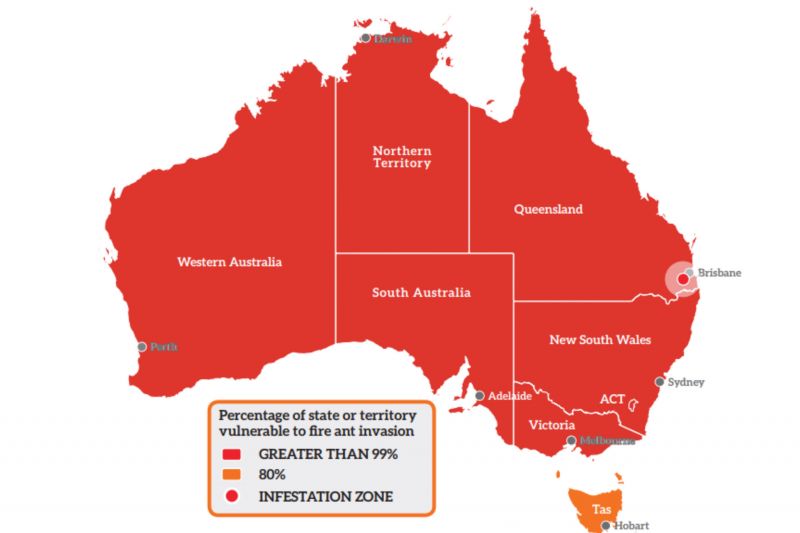 Fire ants have the potential to inhabit most areas of Australia, as far north as Tropical North Queensland.